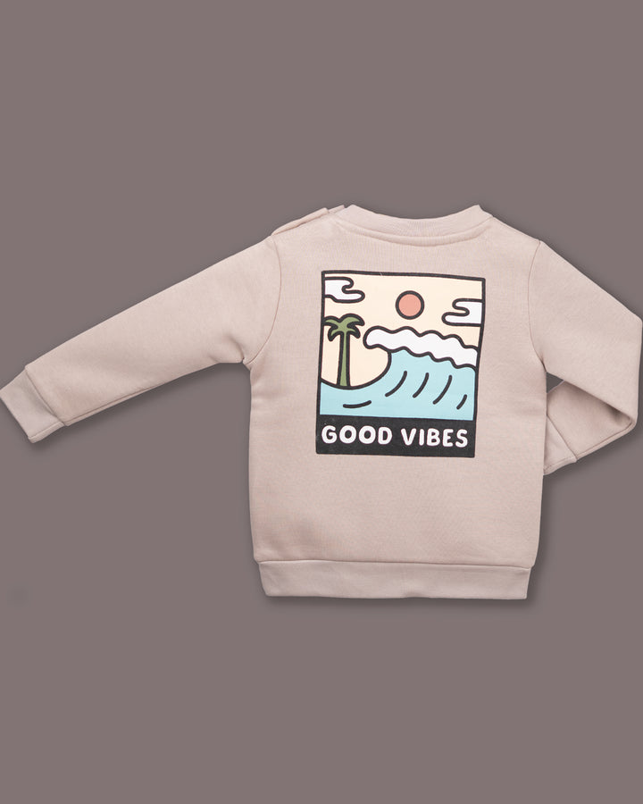 Bring home some tropical magic and positive energy for your little rockstar! The Good Vibes Kids Co-ord Set features a super cute beach graphic sweatshirt and matching joggers, perfect for keeping your child cozy in style.